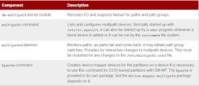 Multipath consists of a kernel module(dm-multipath), a command line program(multipath), a daemon(multipathd) and another command line program (kpartx)